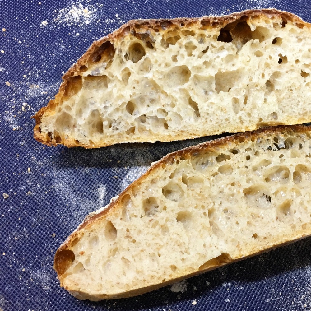 表面にライ麦粉(無いので全粒粉で代用)を振ってから、クープ(切れ目)を入れます。