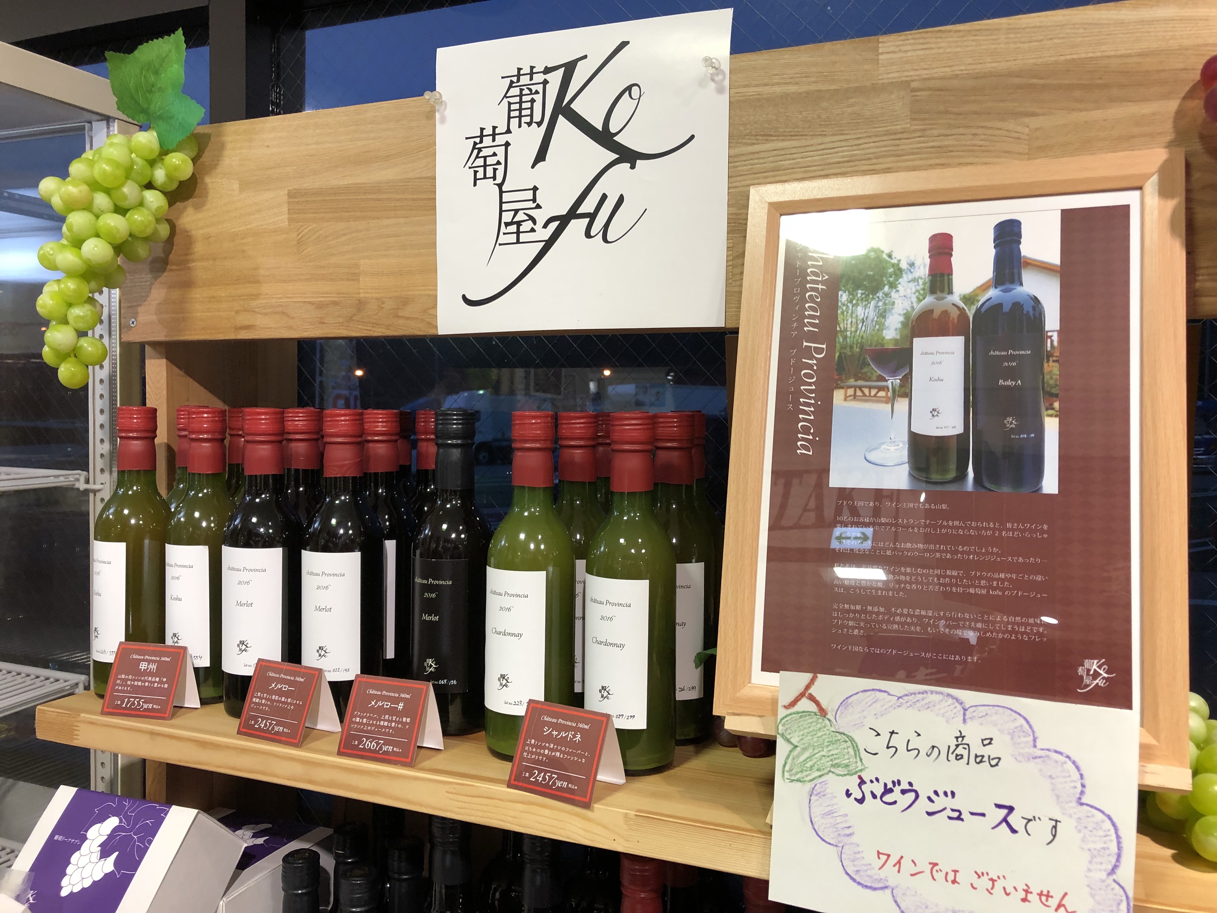 中央自動車道経由で伊那方面へ向かう途中の八ヶ岳PAにて、山梨県の葡萄屋kofuさんのノンアルコールワインジュースを発見しました。