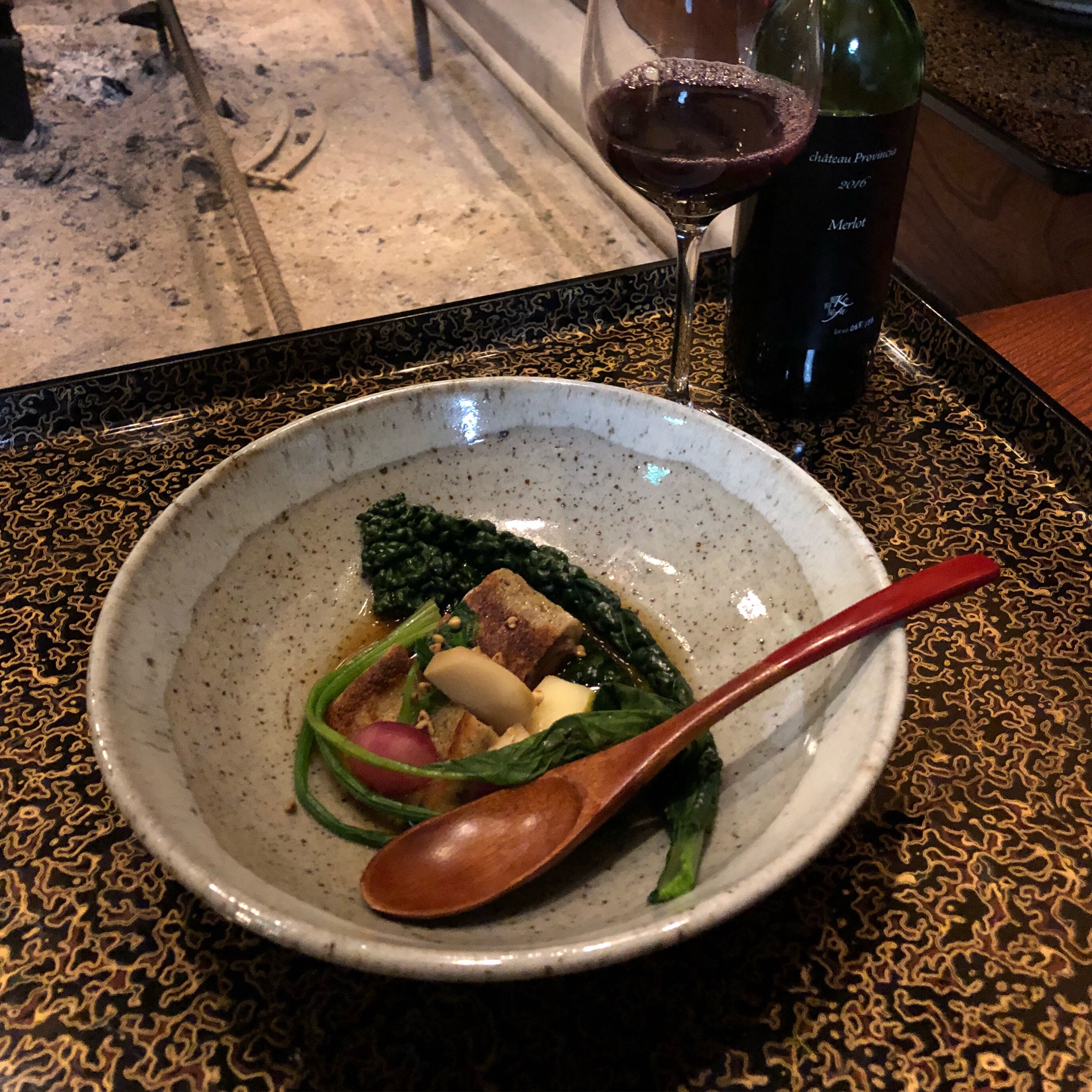 夜はジビエ料理だったので、「メルロー#ブラックラベル」を開けました。口当たりは優しく、葡萄の濃厚さはしっかりあって、甘過ぎず、まずまずでした。