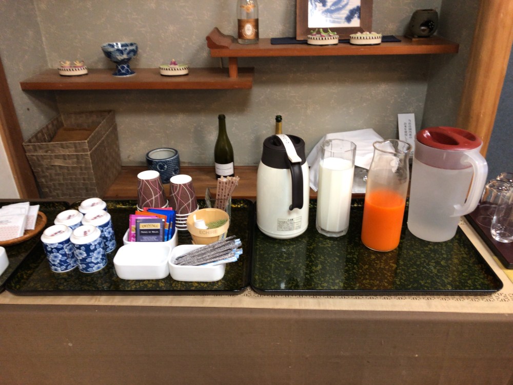 飲み物はセルフです。写っていませんが、左端に湯沸かしポットがあります。