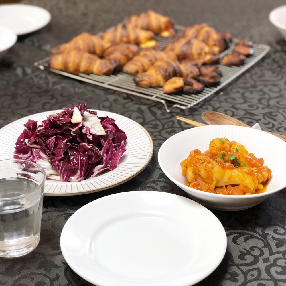 ランチはトレビスのサラダとチキンのトマト煮でした。