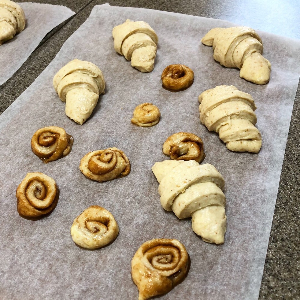 ホシノ天然酵母を使っての製作。一つはチーズ入りで、一つはプレーンに。余り生地はシナモンデニッシュ風に。