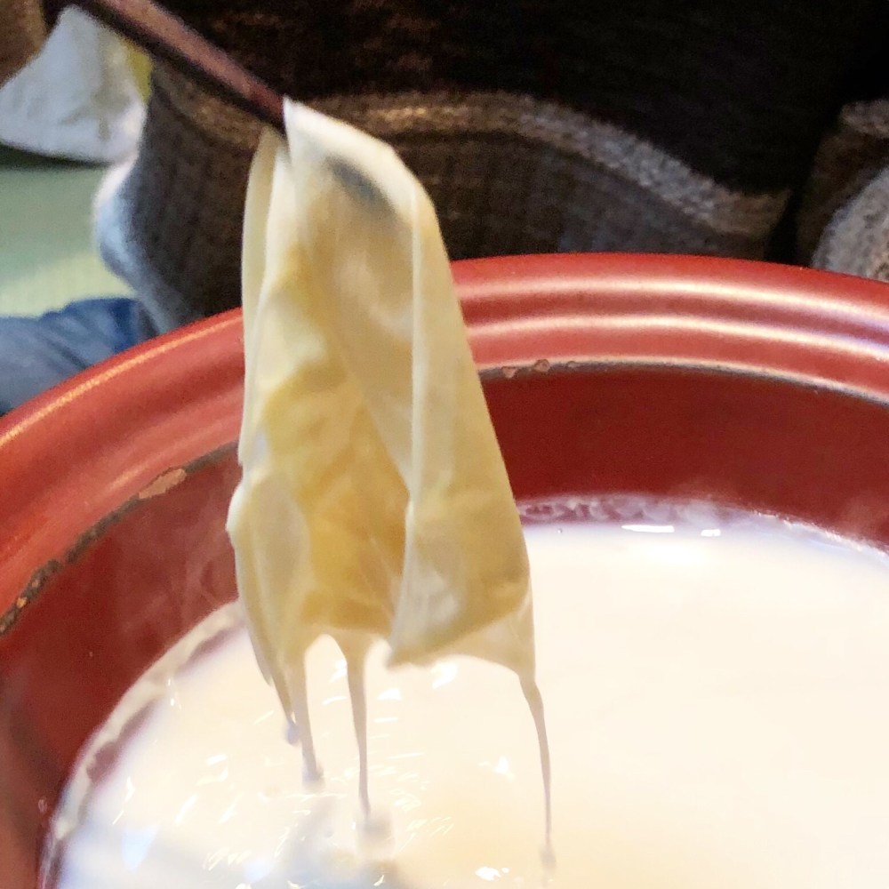お豆腐料理屋さんで汲み上げ湯葉など。こちらのお店では豆酔鍋というそうです。