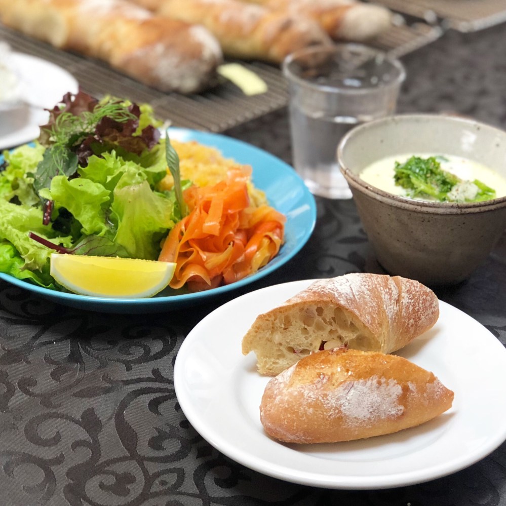 写真には写っていませんが、先生がブルサンのガーリックを出してくれました。パンに付けたら美味しくてやめられない止まらない状態に。