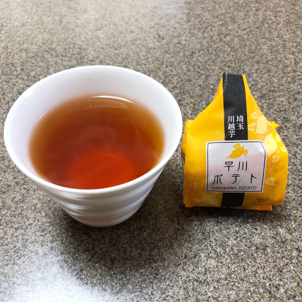 毎回恒例のおやつは、川越名物というお芋のスイーツでした。お茶はルイボスティーだったような。