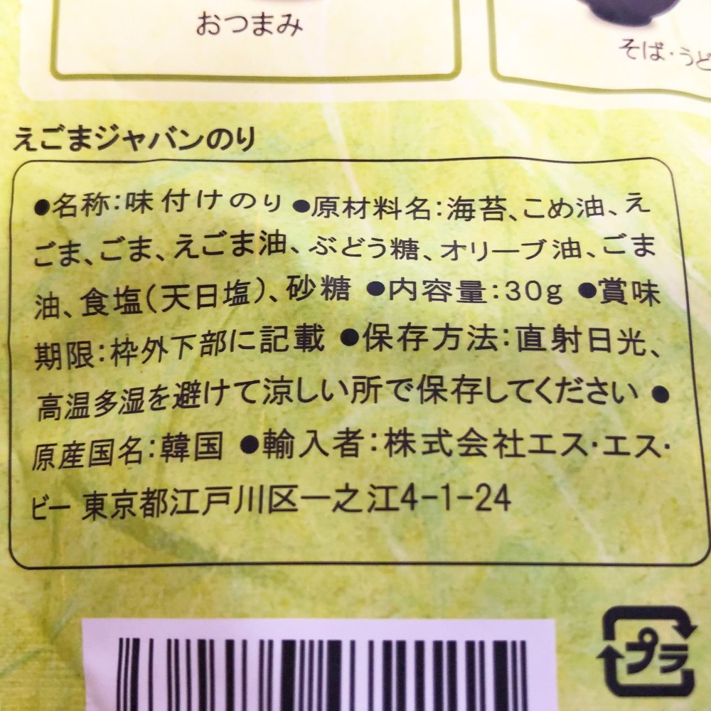 韓国のりなので、基本、油まみれではあるものの、実際食べてみると、海苔の部分はパリパリで、塩分糖分もほどほどでした。通常の韓国のりより塩分は控えめかなーと思います。ご飯にかけても、おつまみにしても良い感じで、家人にも好評でした。