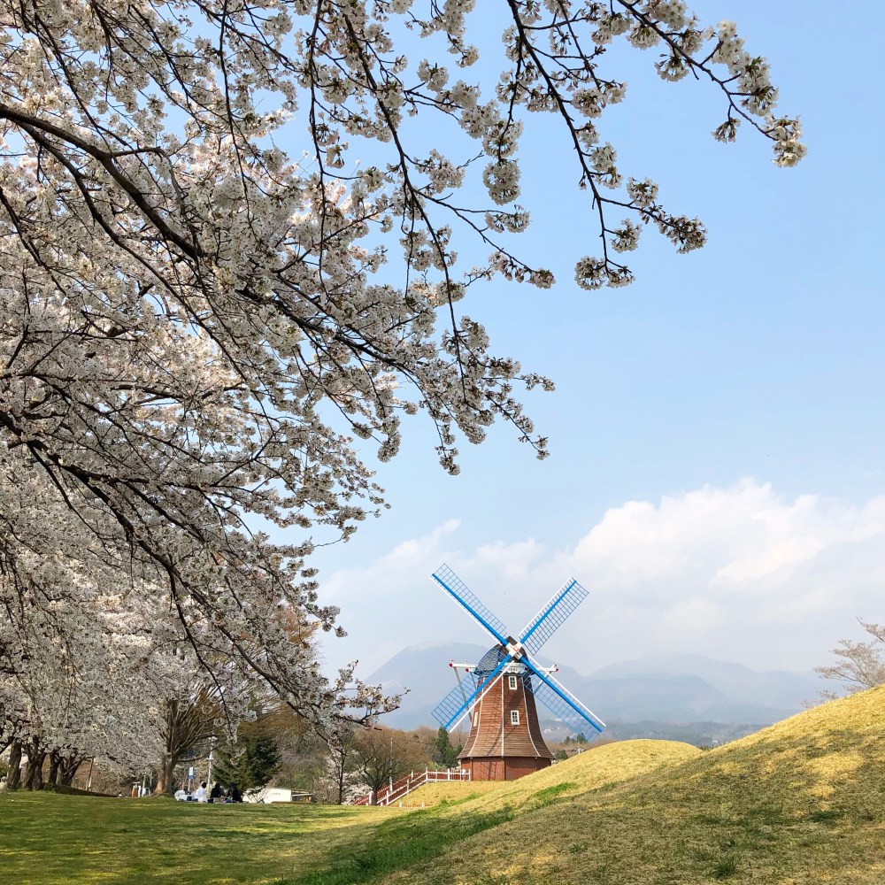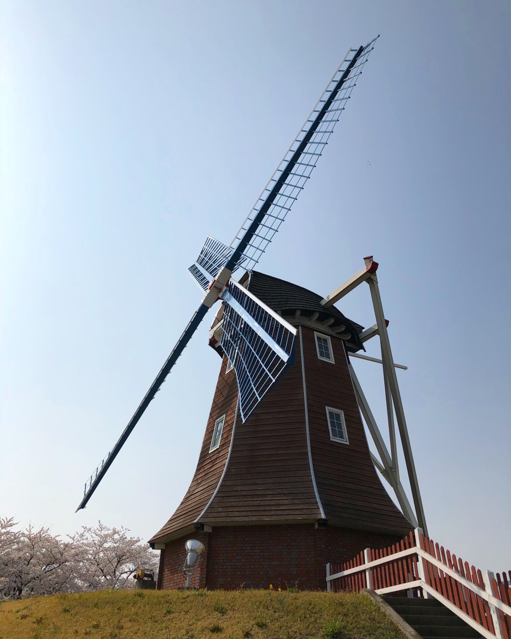 元々花見が主目的では無かったのですが、山の方の桜は今がちょうど満開で、風車と満開の桜が堪能出来ました。