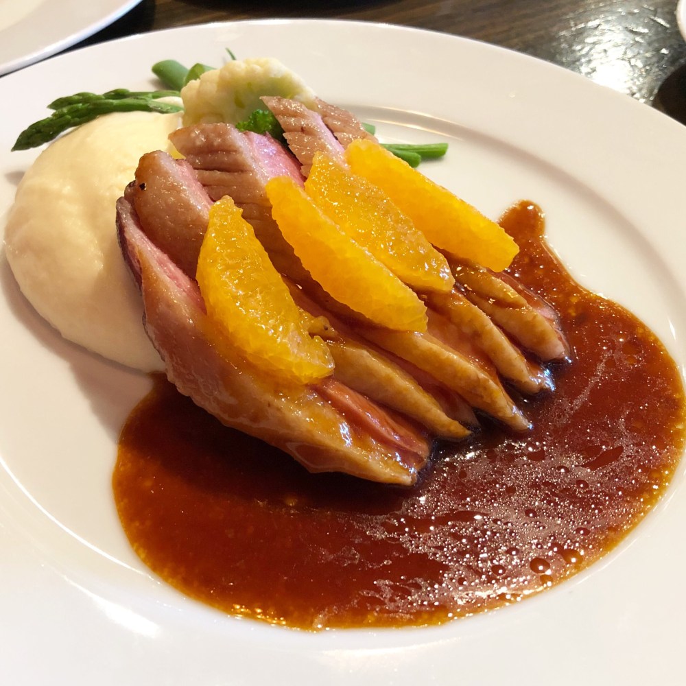 メインは紅茶鴨胸肉のロースト。肉もボリューミィでしたが、付け合わせもまたたっぷりと。