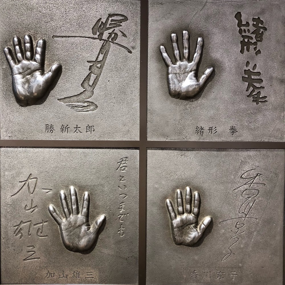 通路のところに芸能人のサインと手形のレリーフが飾ってありましたので、いくつかご紹介。