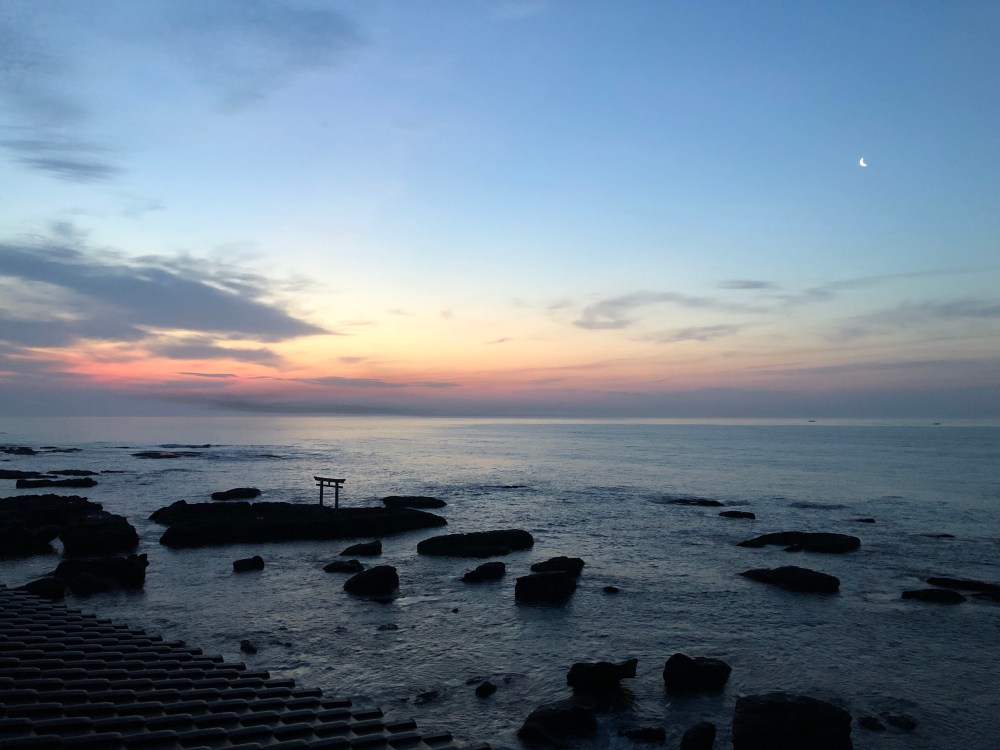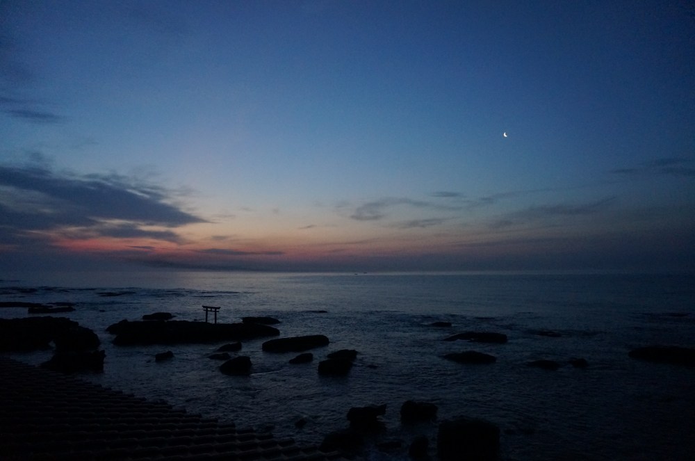 Etc・Travel 大洗磯前神社 神磯の鳥居 投稿者: KYO 投稿日: 2018-05-122018-05-22 大洗磯前神社の神磯の鳥居と朝日を撮るべく、早起きして日の出を待ちました。 幸いにも東側の水平線上に雲はいませんでした。 4時の段階ではまず月が。 そして、日の出。 鳥居と太陽の道を。 以上、全てスマホで撮影しました。 以下は、デジイチで撮影した写真です。多少の時間差とニュアンスの違いが顕著でした。 月の出 日の出 日の門 写真をざっくり確認した後、朝食時間までしっかり二度寝しました(笑) 共有: クリックして X で共有 (新しいウィンドウで開きます) X Facebook で共有するにはクリックしてください (新しいウィンドウで開きます) Facebook クリックして Tumblr で共有 (新しいウィンドウで開きます) Tumblr クリックして Pinterest で共有 (新しいウィンドウで開きます) Pinterest いいね 読み込み中… 関連 投稿者: KYO ペンギン好き、美味しい物好き。投稿の殆どは食レポのみ。 たまーに風景とか温泉とか読書とか。 フォロー&リフォロー、リンクはご自由に。 連絡頂けた場合には喜んで見に行きます。 KYO の投稿をすべて表示