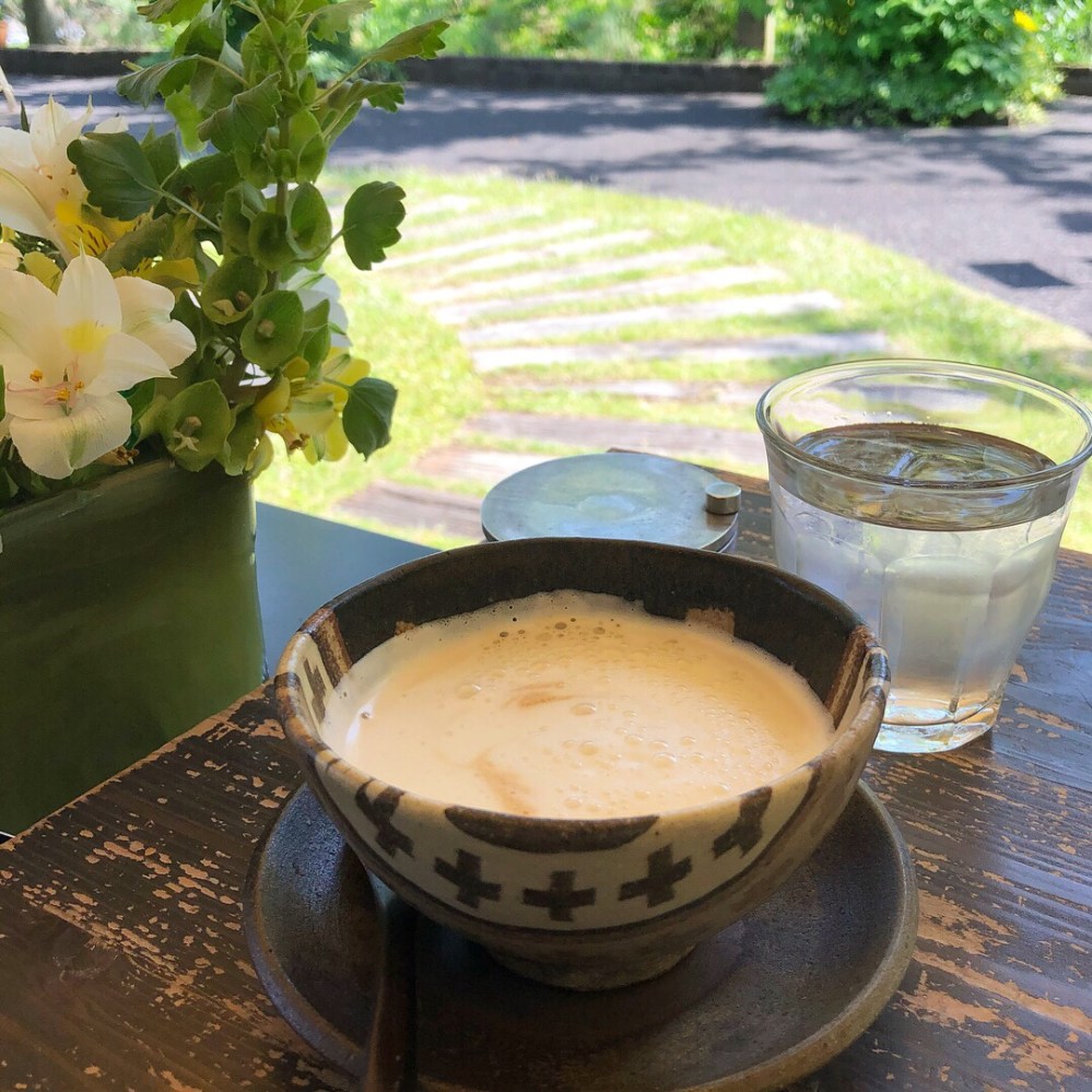 神津牧場ミルクのカフェオレ。カップも素敵です。