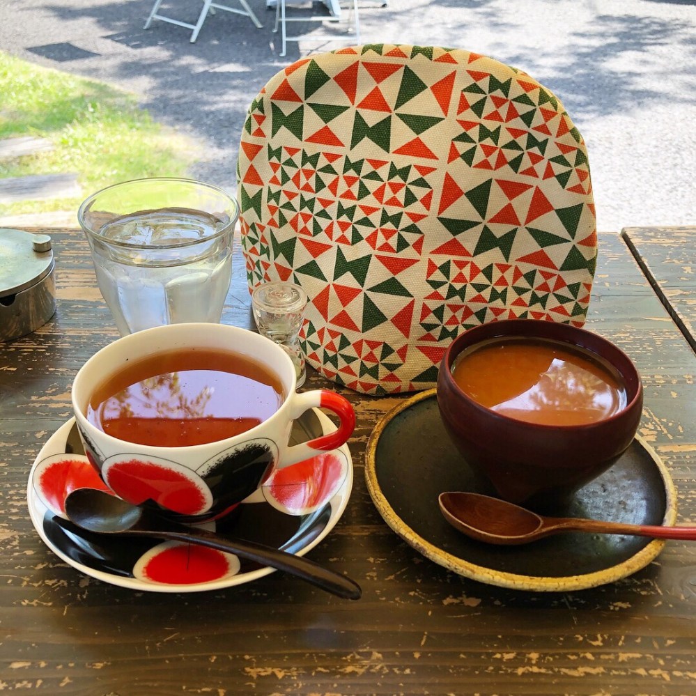 わたらい茶という和紅茶と、ほうじ茶杏仁など。やはりカップがユニークでした。
