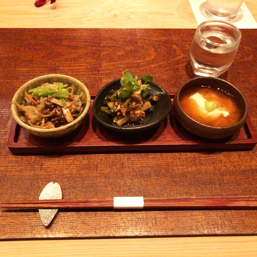 十種野菜きんぴら、地鶏笹身と自然栽培春菊、山独活の柚子胡麻味噌和え、汲み上げ湯葉の冷製鼈甲餡掛け。鼈甲餡は「べっこうあん」ですね。ローガン。。。