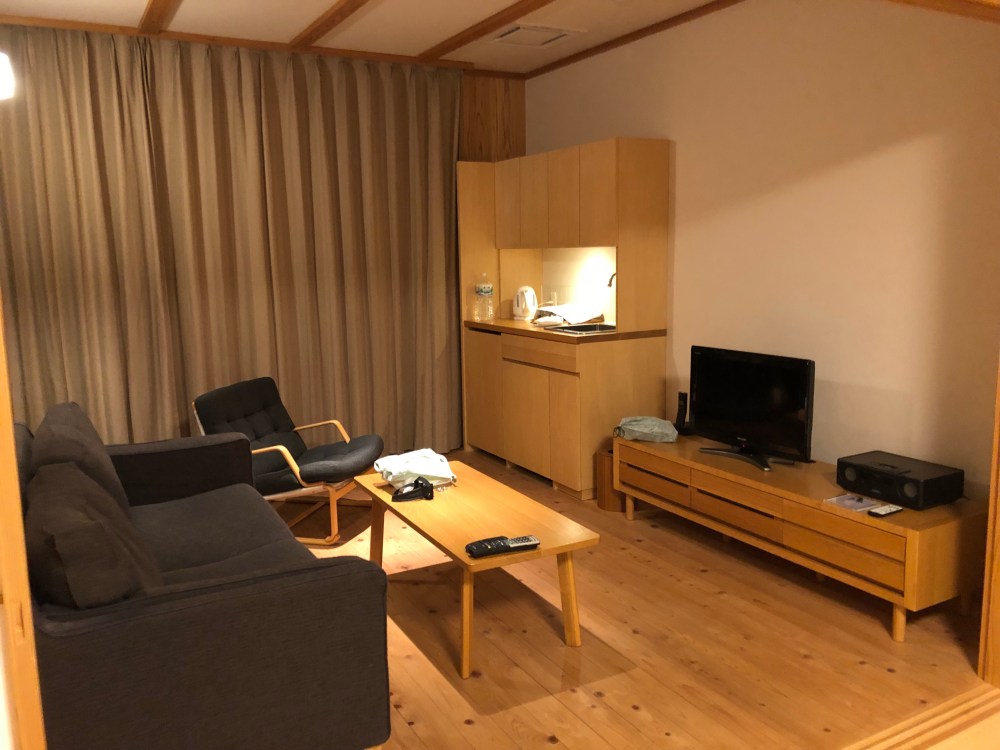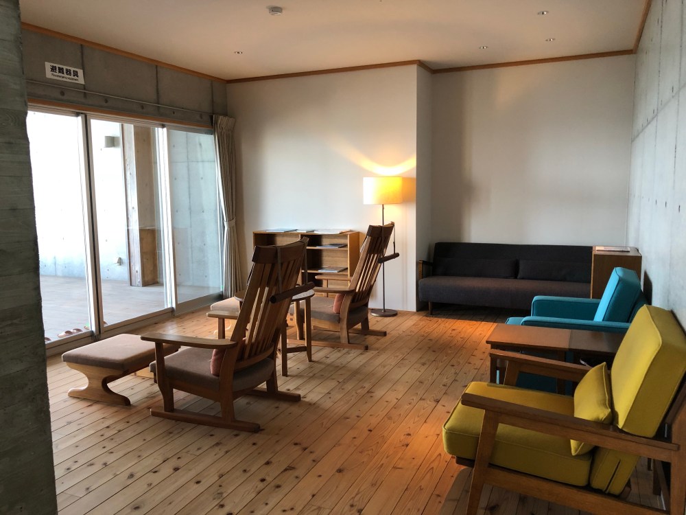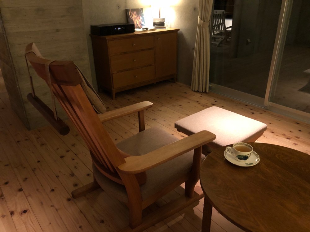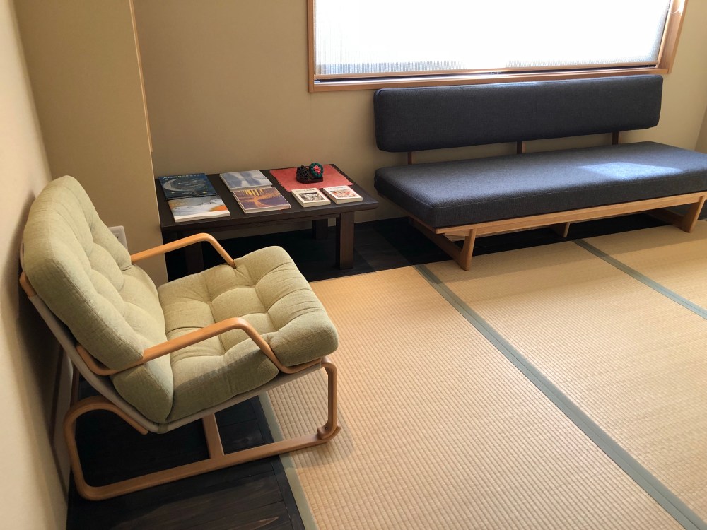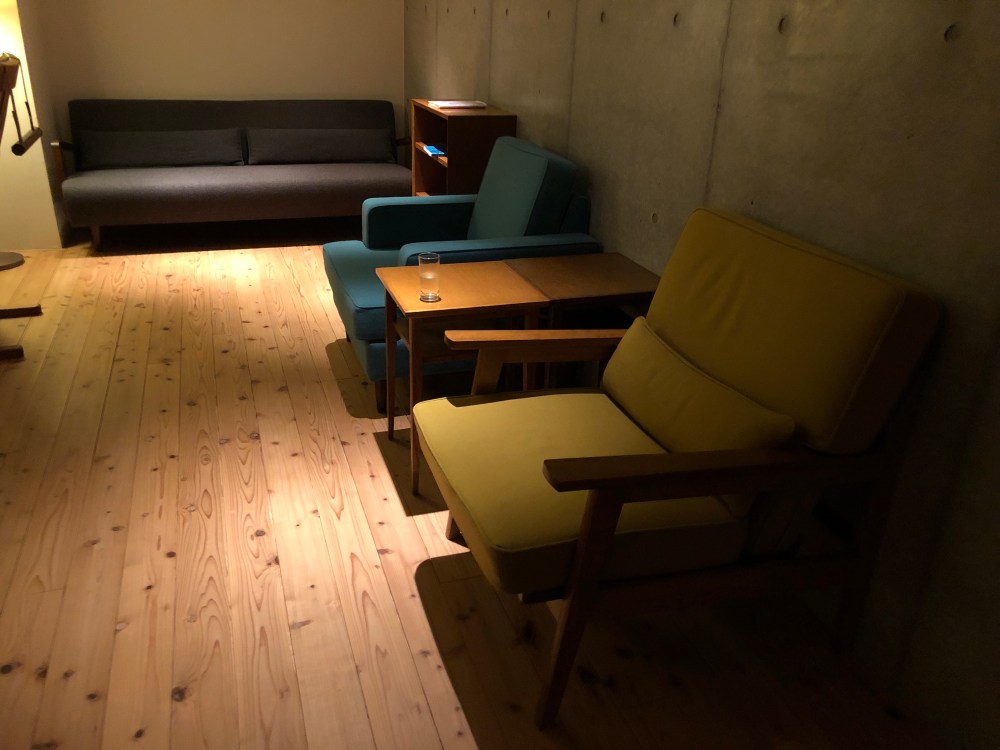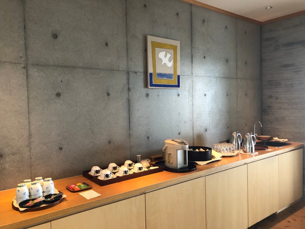 お風呂場の手前にラウンジがあり、リラックススペースになっていました。飲み物サービスも。