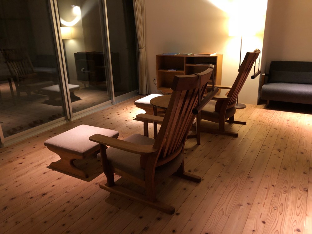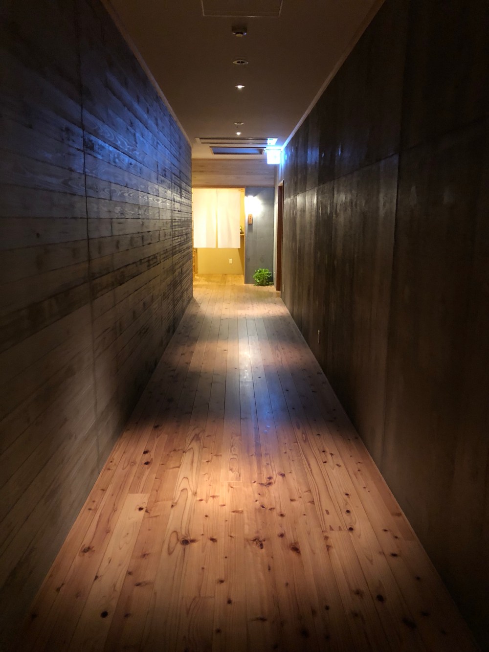夜の感じも少々。ラウンジ側からお風呂場方面