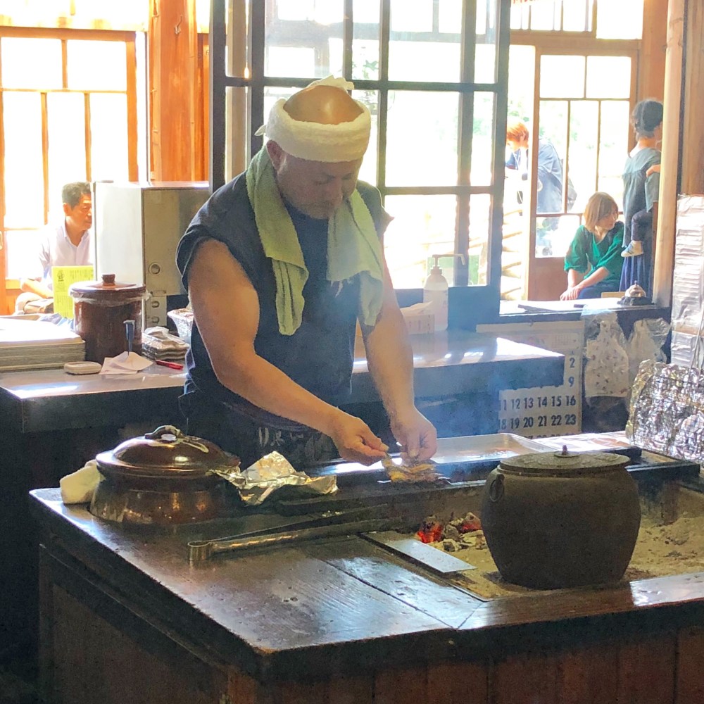 生きている鮎をその場で串に刺して、一旦水に離し、それから引き上げて炭火で焼いていました。