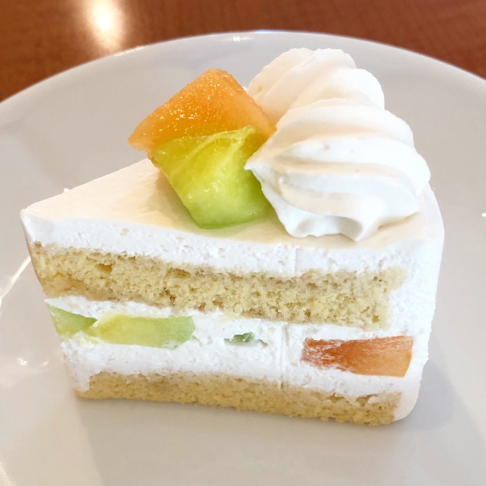 ケーキはこの季節になると食べたくなるメロンのショートケーキ。最高に美味しいです。