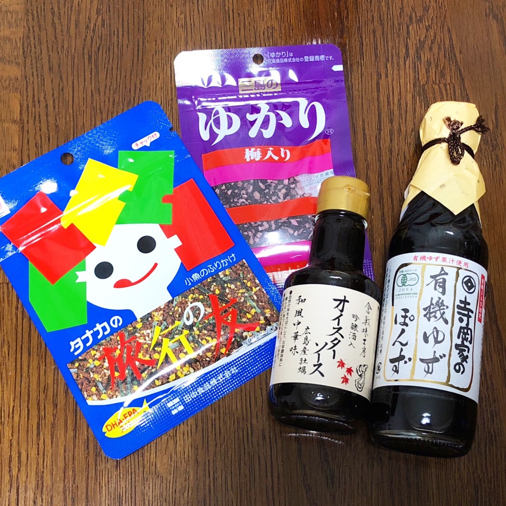Etc・Food 本日の買い足し調味料など 投稿者: KYO 投稿日: 2018-07-132018-07-13 本日の買い足し調味料いろいろ。 久しぶりにふりかけを買いました。 広島でふりかけと言えば、やっぱり三島食品さんのゆかりと田中食品さんの旅行の友!夏なのでゆかりは梅入りにしてみました。 寺岡家さんのポン酢は久しぶりに買いました。 倉敷味工房さんの吟醸酒入りオイスターソースは大大大好きな調味料で、いつも切らさないよう常備しています。広島産牡蠣ですし。 どれも美味しいので、おススメです😊 共有: X で共有 (新しいウィンドウで開きます) X Facebook で共有 (新しいウィンドウで開きます) Facebook Tumblr で共有 (新しいウィンドウで開きます) Tumblr Pinterest で共有 (新しいウィンドウで開きます) Pinterest いいね 読み込み中… 関連 投稿者: KYO ペンギン好き、美味しい物好き。投稿の殆どは食レポのみ。 たまーに風景とか温泉とか読書とか。 フォロー&リフォロー、リンクはご自由に。 連絡頂けた場合には喜んで見に行きます。 KYO の投稿をすべて表示