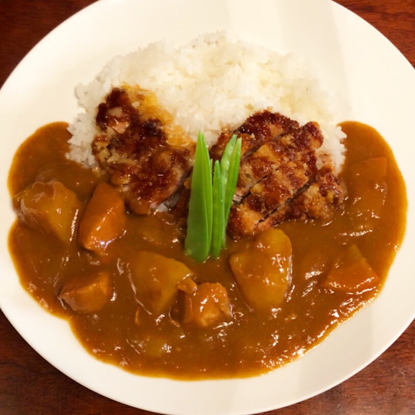 そして、カツカレー。ご飯半分で、と頼んでいましたが、このボリューム。