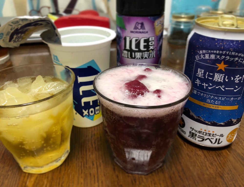 グレープ氷とグレープフルーツ氷にビール。