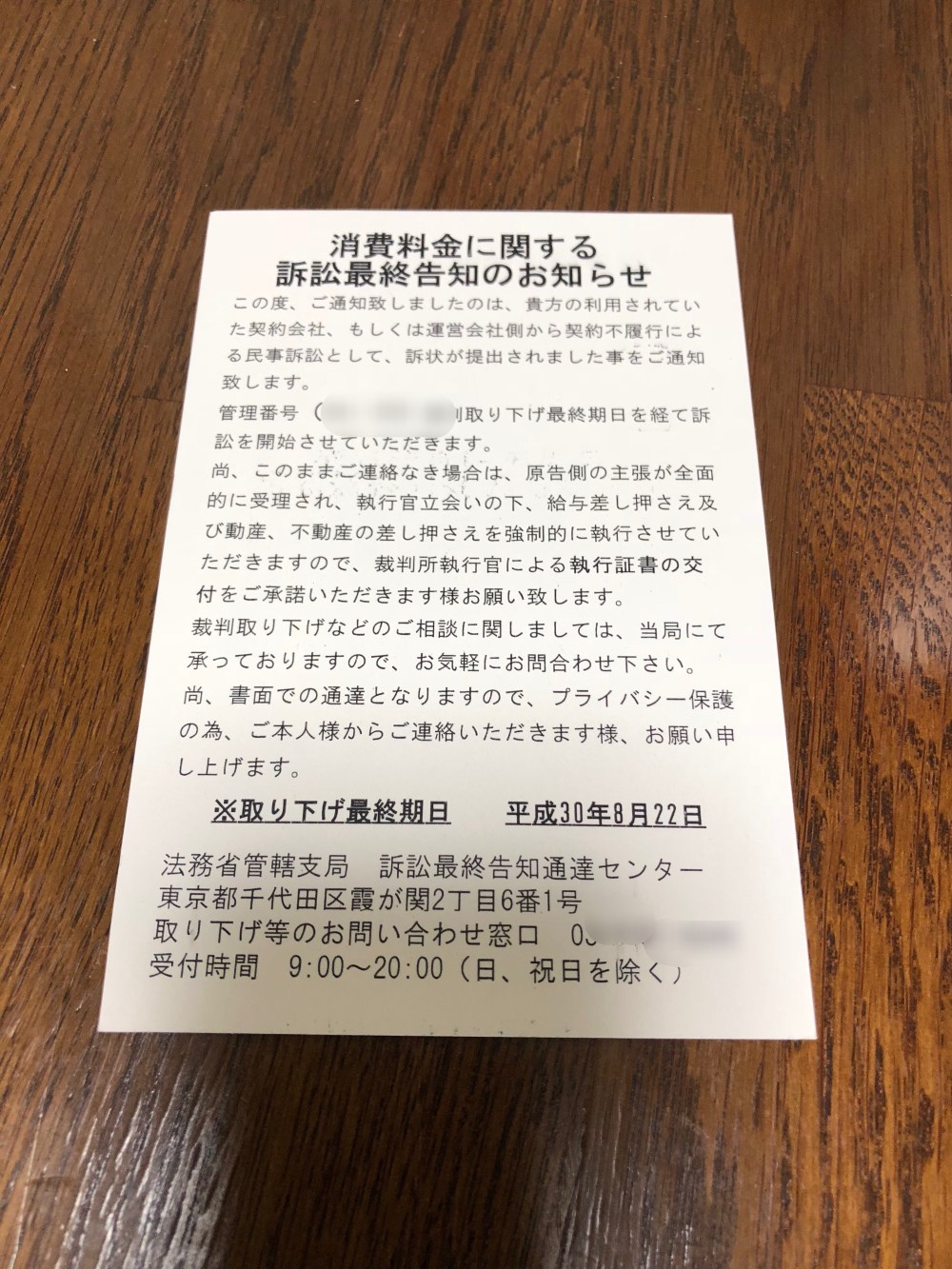 Etc 法務省を語るサギ葉書 投稿者: KYO 投稿日: 2018-08-212018-08-21 最近話題の法務省を語った訴訟脅しのガセ葉書が、うちにも来ました。まあまあ頑張ってるけど日本語が不自由な方から来た模様です。 葉書代と手間かけてご苦労様なことですねぇ。 みなさま、間違っても電話しちゃだめですよ。 心配な方は、電話するなら警察か消費者センターへ! ちなみに、消印が豊島区でした。ダセー! 霞ヶ関を名乗るなら、せめて千代田区管内から出しましょうね。豊島区なんかからじゃなくて。池袋辺りから出したのかなーと推測中デスw 共有: クリックして X で共有 (新しいウィンドウで開きます) X Facebook で共有するにはクリックしてください (新しいウィンドウで開きます) Facebook クリックして Tumblr で共有 (新しいウィンドウで開きます) Tumblr クリックして Pinterest で共有 (新しいウィンドウで開きます) Pinterest いいね 読み込み中… 関連 投稿者: KYO ペンギン好き、美味しい物好き。投稿の殆どは食レポのみ。 たまーに風景とか温泉とか読書とか。 フォロー&リフォロー、リンクはご自由に。 連絡頂けた場合には喜んで見に行きます。 KYO の投稿をすべて表示