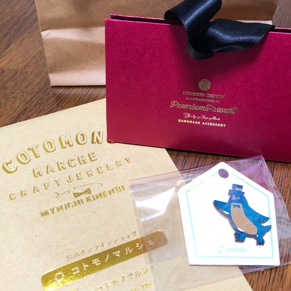 コトモノマルシェで見つけたというペンギンプローチを頂きました。ポトフという雑貨作りユニットの作品です。