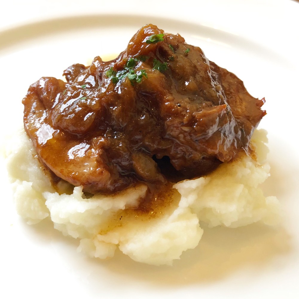 メインはとろける牛肉の赤ワイン煮込み。下のマッシュポテトもうまー。