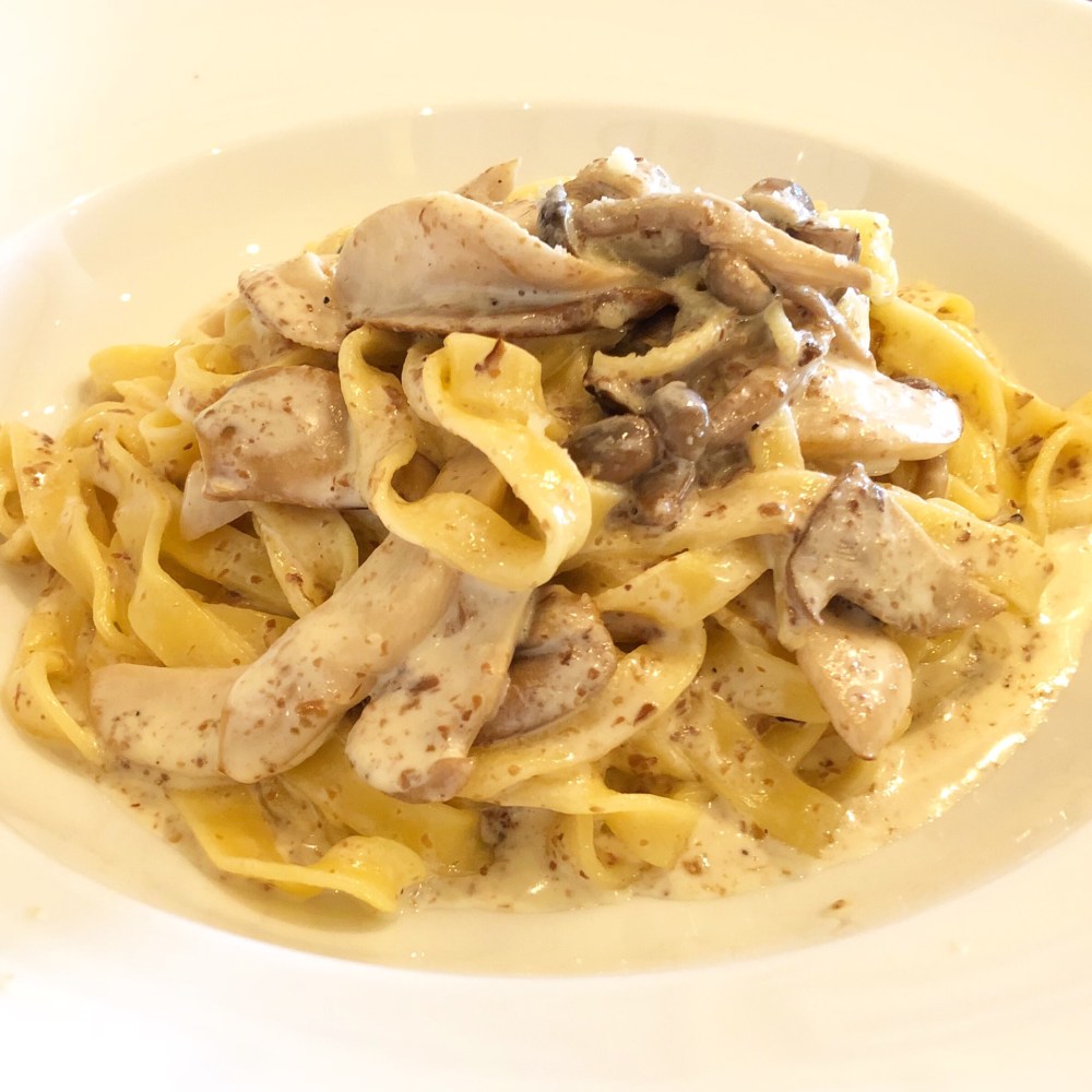 パスタはどうしよっかなーと悩みつつ、肌寒かったので、こってりも良いなぁと、2種きのこのクリームソースをば。