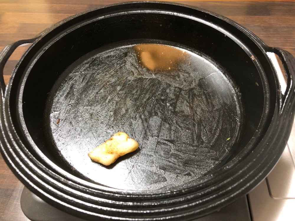 食べ終わったすき焼き鍋の図。バッチリ完食。