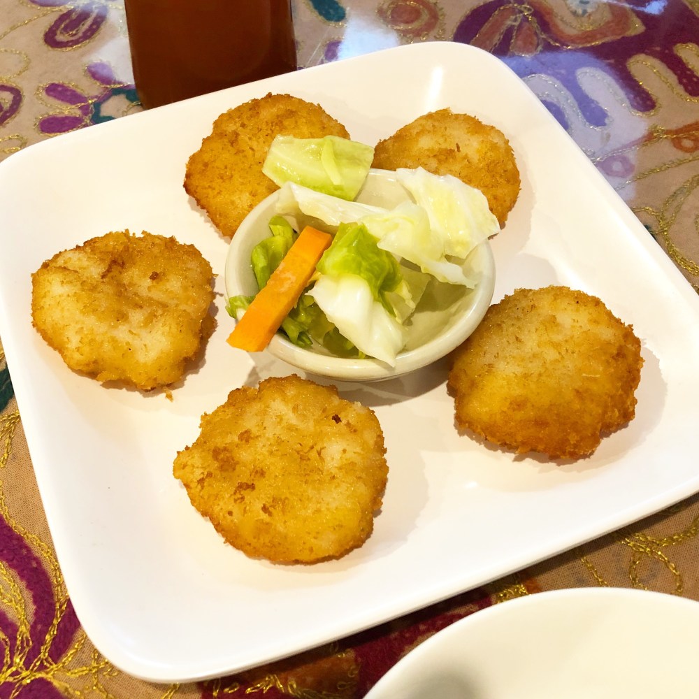 海老のタイ風さつま揚げ、トード・マン・グン。そのままでもスイートチリソースをつけても美味でした。