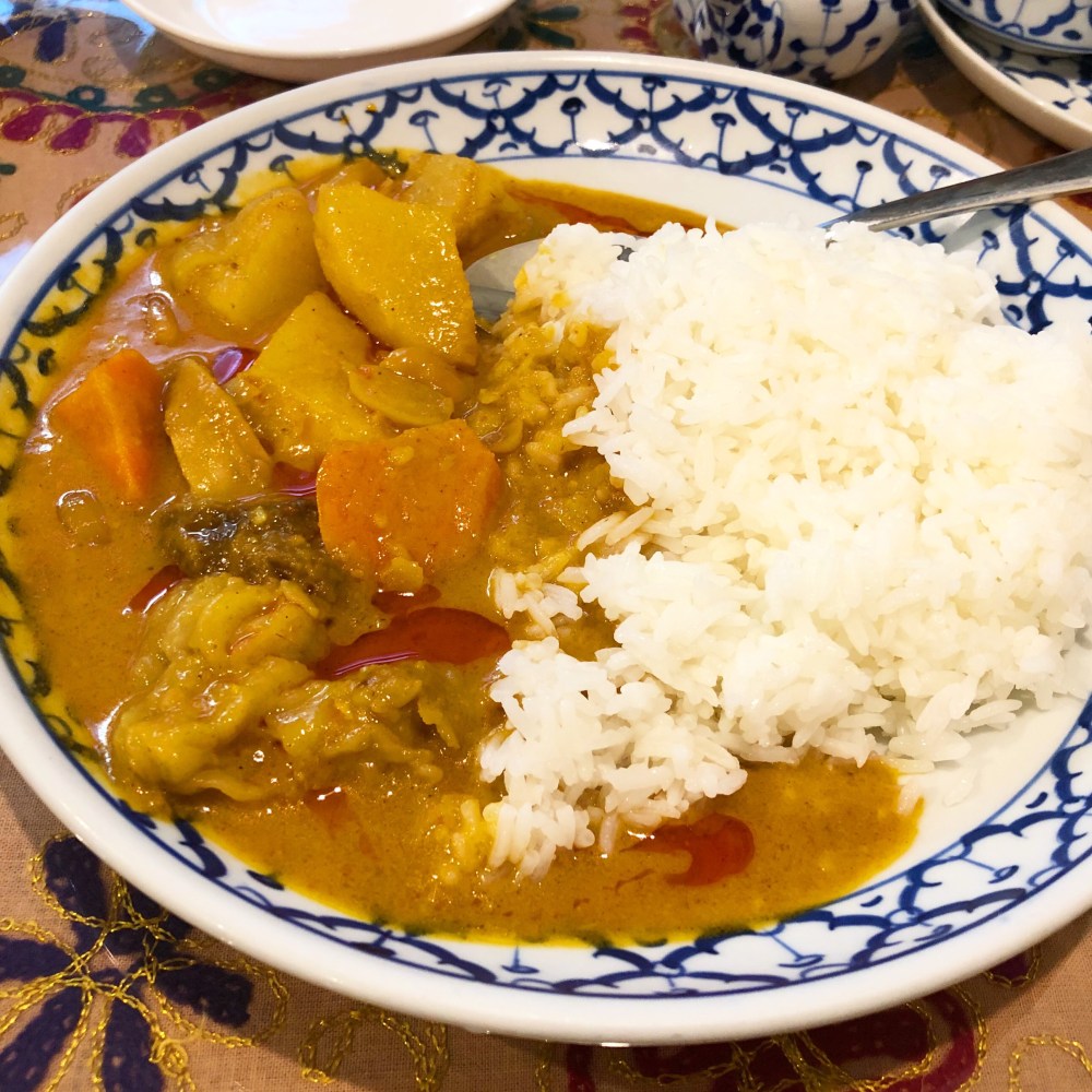 タイ南部地方のカレー、ゲエーン・マ・サ・マン。見た目だけなら日本のカレーと言っても通りそうな外観ですが、いわゆるマッサマンカレーって、これのことなのでしょうか?
