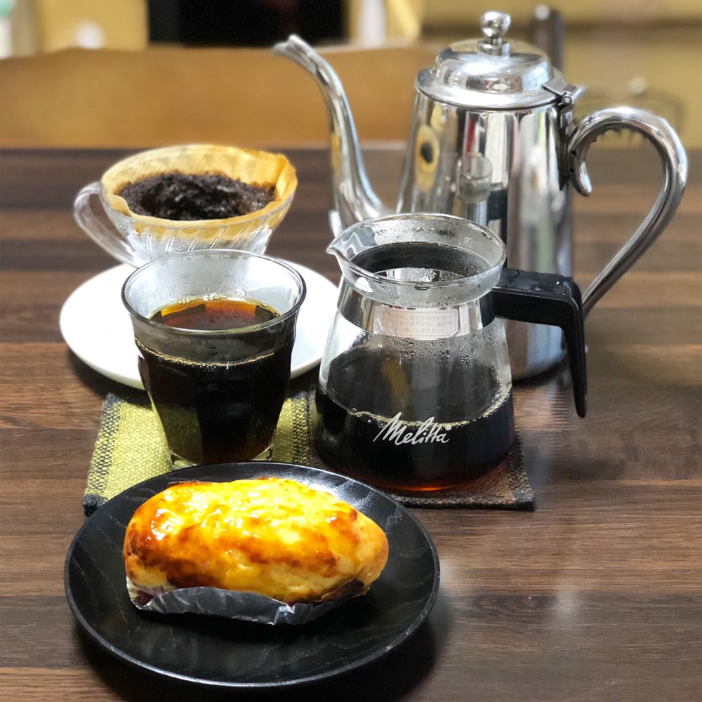 普段、珈琲を飲む時は豆を手挽きしてフレンチプレスで淹れていますが、挽き目は中挽きよりはやや細かめ、かつ、深煎りだったので、フレンチプレスにはやや不向きかなーということで、久しぶりにハンドドリップで淹れてみました。