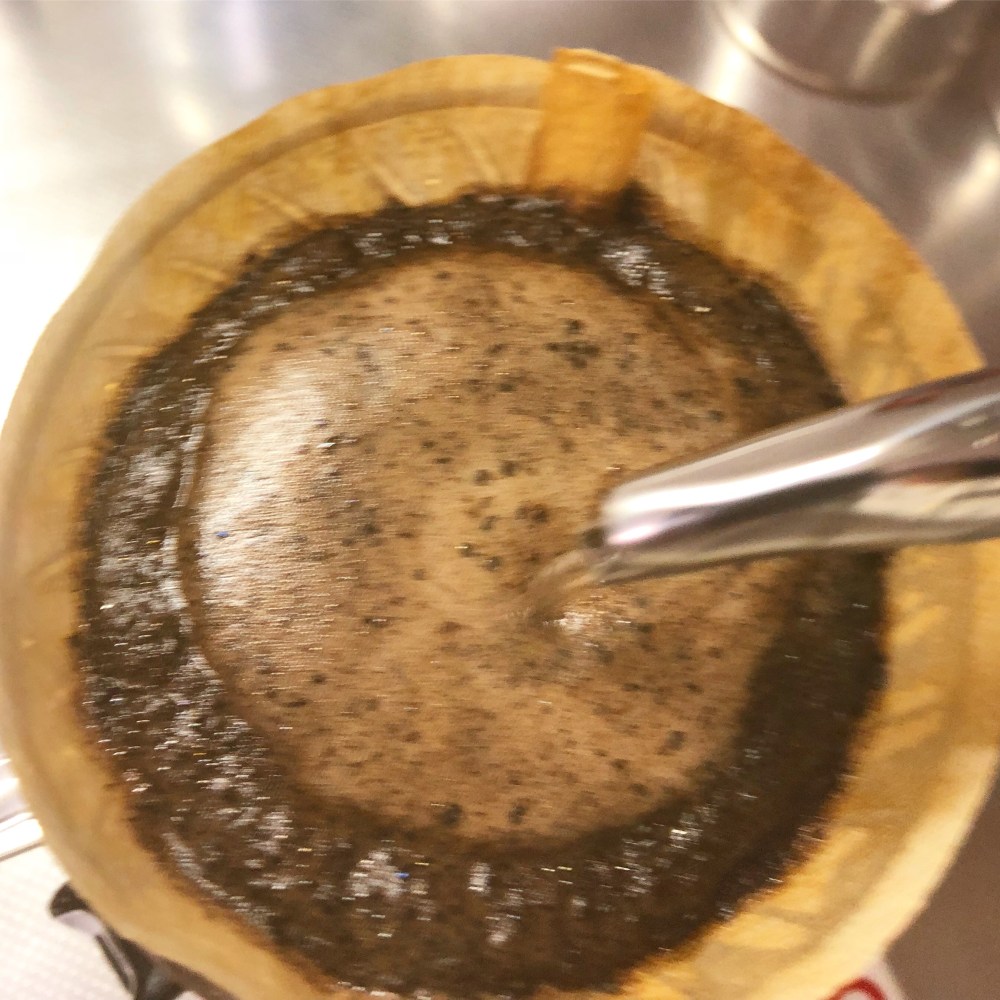 ハンドドリップは注ぎ方と注ぐ時間が結構ポイントかなと思います。時間はスケールを使えば問題ありませんが、注ぎ方は素人にはハードルが高い部分だよなーと。細すぎず太過ぎずの塩梅が難しく、真ん中に小さくこんもり。。。とはなかなか行きません。