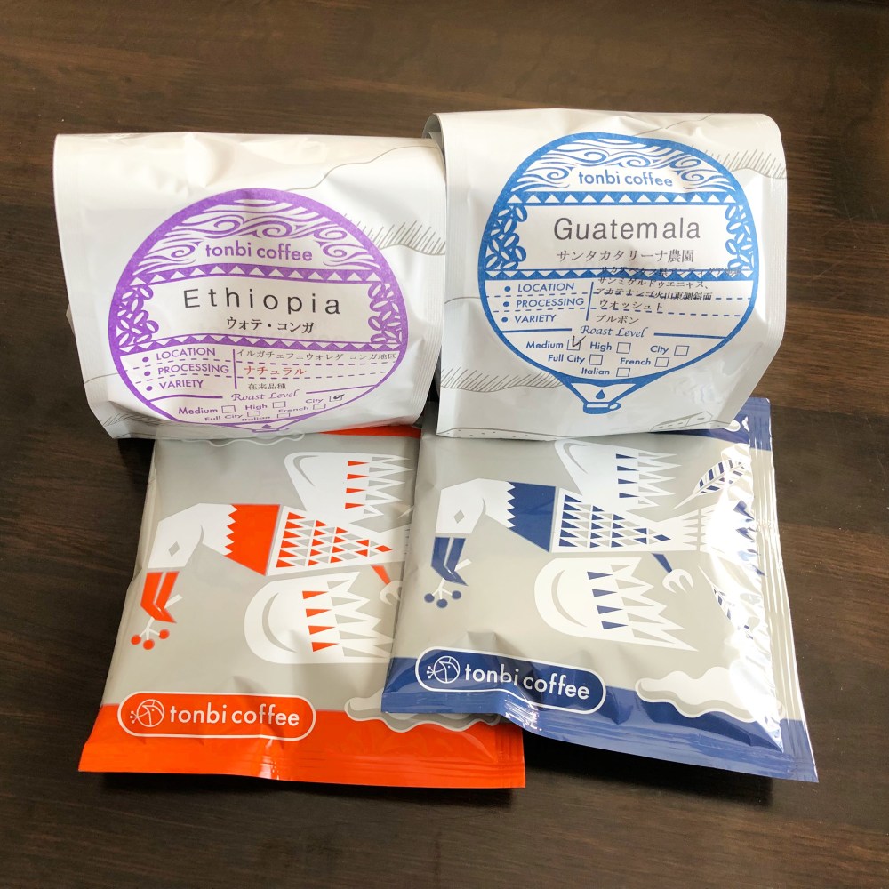 tonbi coffee さんは、100gから売ってくれるので、とても助かります。200gだと、消費スピードの問題上、同時に2種類はなかなか買えないので。