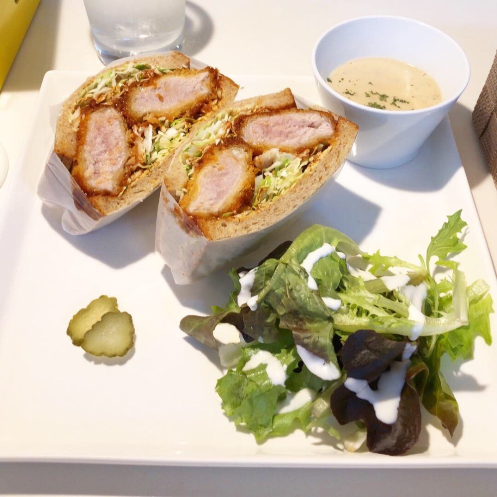 名物のカツサンドセットを頂きました。ロースとヒレがあったので、ヒレで。