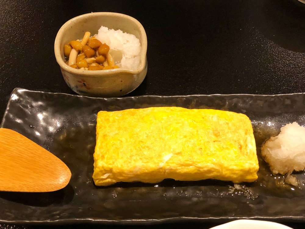 お初のお蕎麦屋さんに行くとき、個人的にまず頼みたくなるのが、だし巻き卵です。家人のリクエストで、なめこおろしも追加しました。