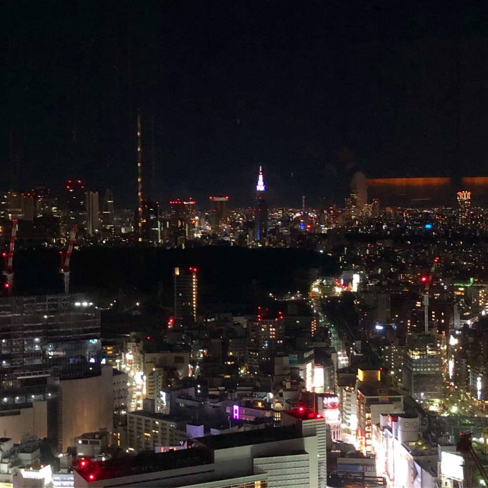 カップル席が空いていたので、景色もそこそこ見えました。窓際からだとこんな感じで、新宿方面が見える位置でした。