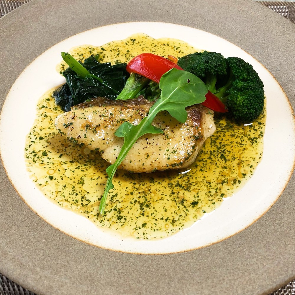 お魚は真鯛のポワレでハーブたっぷりのあっさりソースでした。
