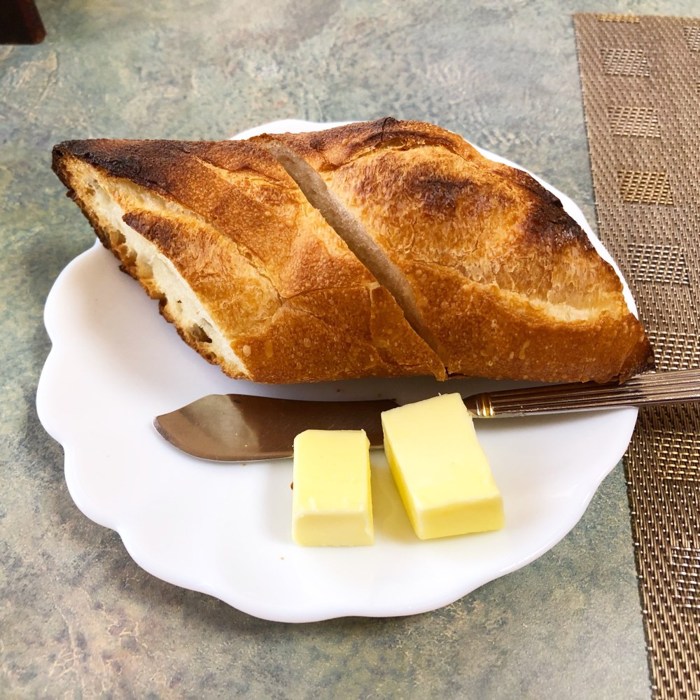 シャキシャキしたレタスのほろ苦さとチーズのソースがよくあっていて、めっちゃ美味でした。となれば、もちろんパンの出番です。最後まで余さず頂きました。