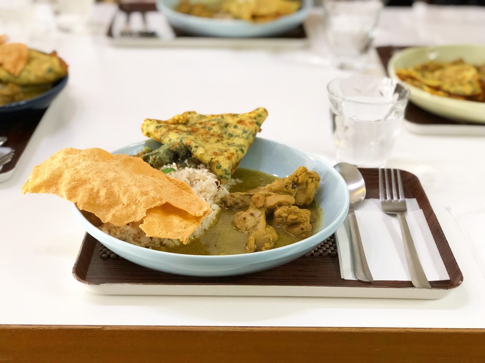 付け合わせはナスのポリヤルとか薄焼きたまごのようなモノなど。料理名を聞くと南インド出身のご主人曰く、全部オリジナルだよーとのこと。