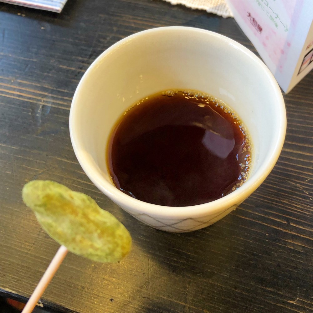 入り口横で、春摘み珈琲の試飲を頂きました。