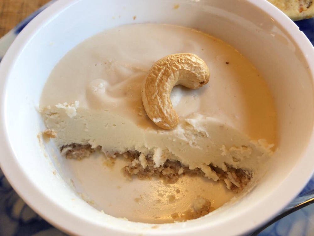 今回の場合、牛乳やクリームも不使用だそうなので、ぶっちゃけチーズケーキもどきのスイーツということになりましょうか。もちろんメニューにもその旨の説明は書いてありました。