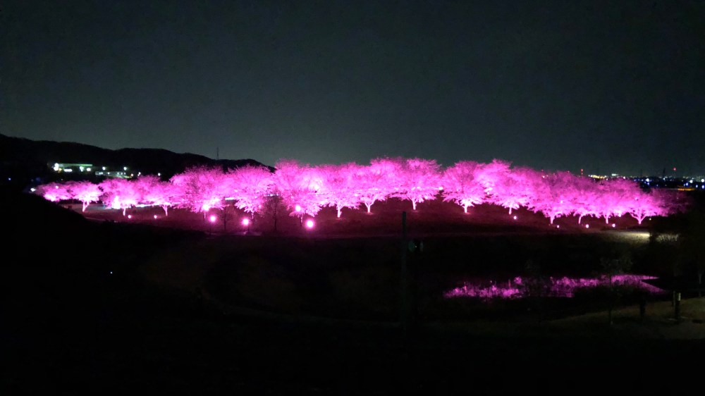 こちらの広場は芝桜が名物なのですが、桜もあるんですね〜。ちょうど今夜辺りが満開だったのではないでしょうか。