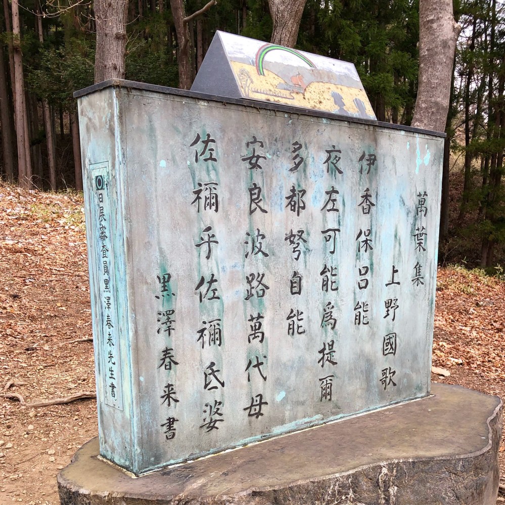 万葉の句碑もありました。珍しく万葉仮名で刻まれた句碑でした。