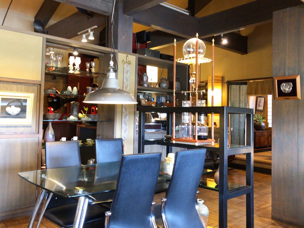 真空管からジャズが流れる落ち着いた和洋折衷の店内には、様々な絵画や焼き物が飾ってありました。