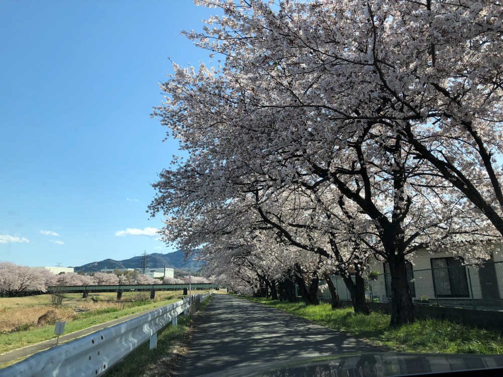 上の写真は全て歩道を歩きながら撮った物ですが、車道の方が桜に近い場所では車の中からも。