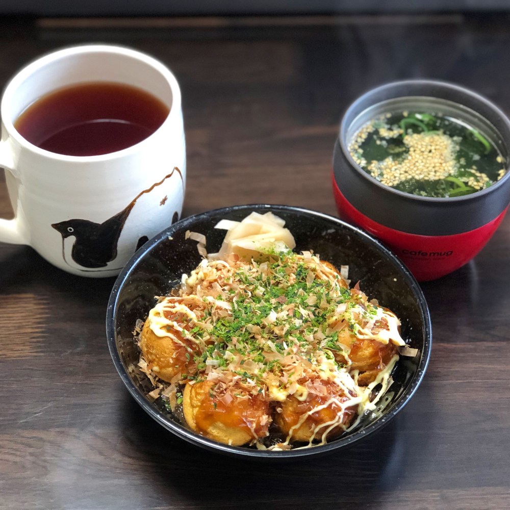 お昼はコンビニおにぎりで、夜はタコ焼き。