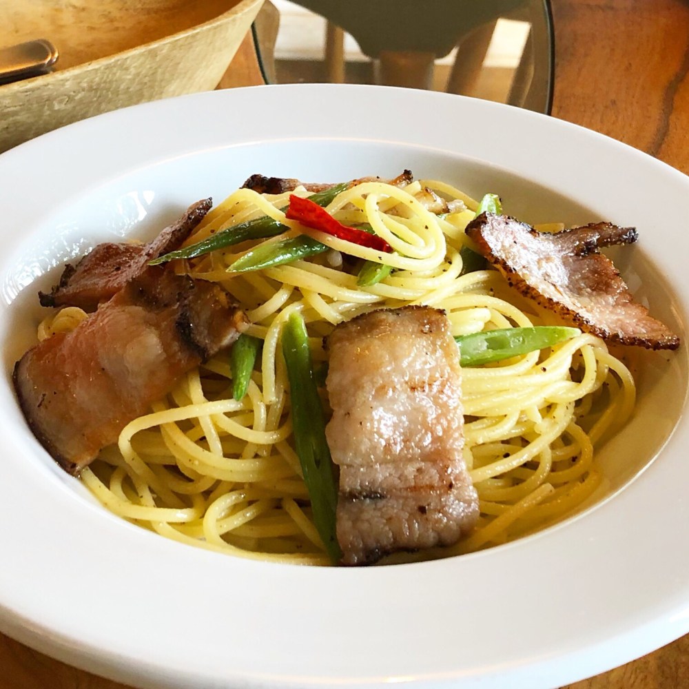 自家製というベーコンのスパゲッティ。絶品でした。