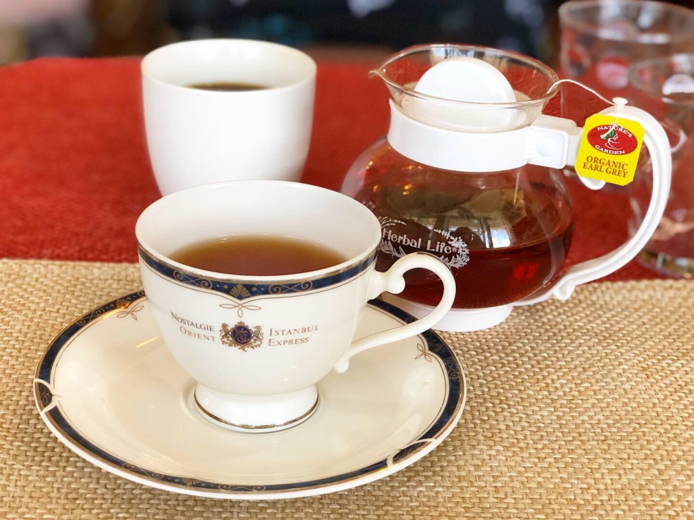 食後の珈琲と紅茶。なぜオリエント急行のカップなのか聞きそびれました。。。
