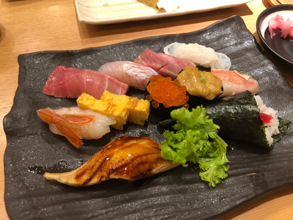 最初は一瞬シャリが小さいのかなーと思ったのですが、そうではなくて、具がとても大きいのでした。写真からだとうまく伝わらないかもなんですが、半分くらい食べたところでかなりの満腹感が襲って来ました。実質、12〜13貫くらいのボリュームがあっただろうと思います。それも具で。